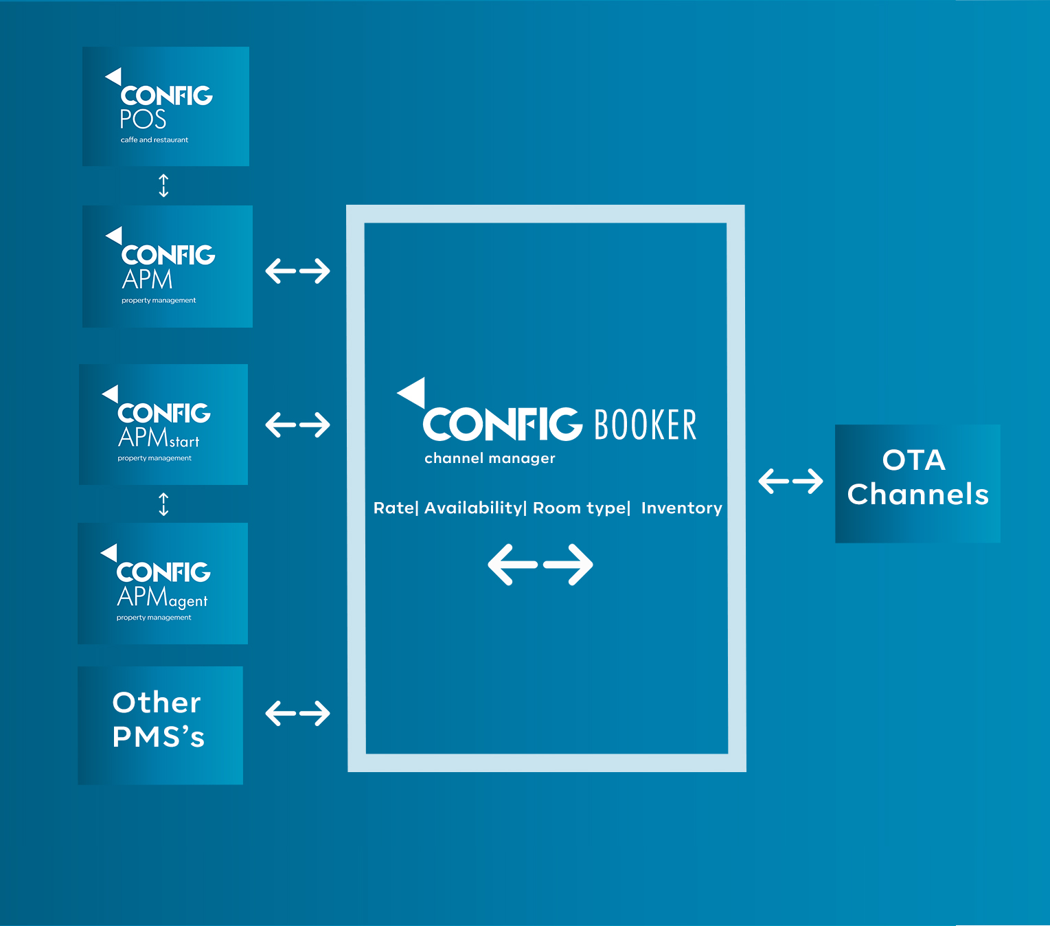We do integrate with other PMS’s, or deliver a complete APM solution with integrated Config Booker Channel Manager